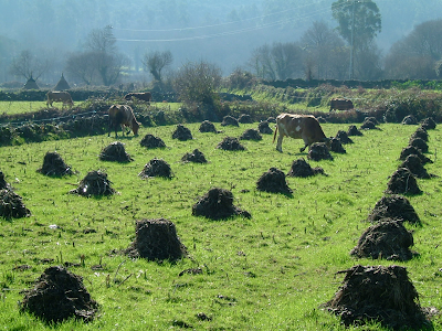 nas encostas risonhas dos meus montes com rugas em regatos cantantes e alegres,